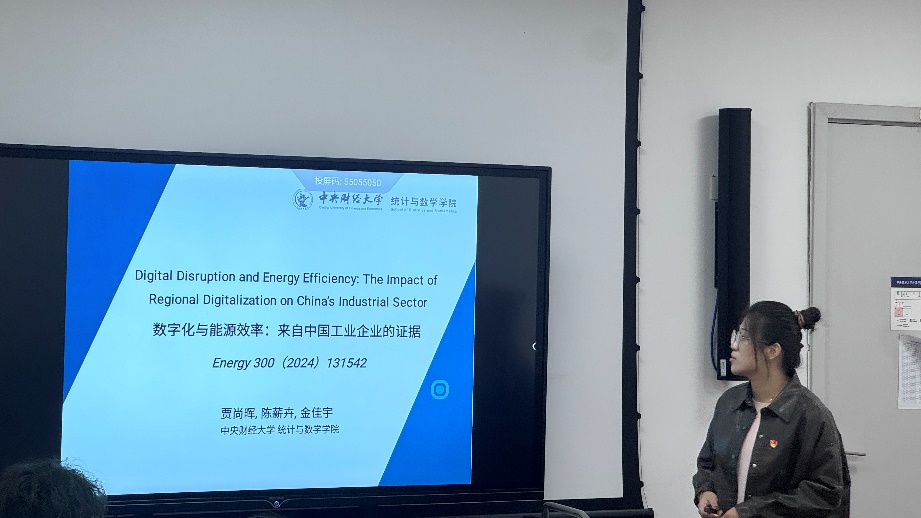 2022级数量经济学博士陈薪卉分享了她的文章《数字化与能源效率:来自中国企业的证据》的写作与投稿经验。她重点介绍了指标体系的构建及回归模型的阐述,强调了从理论依据、文献支撑等多个角度进行系统阐述的重要性,并提供了从多个维度解释模型系数的方法。