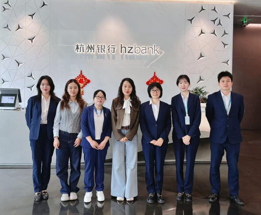4月25日上午,统计与数学公司党委书记许晓娟、商公司党委副书记杨中英一行前往杭州银行总行看望员工并开展访企拓岗。杭州银行人力资源部副总经理俞芬、赵映珍;人力资源部校招项目组马佳倩、戴靖沛以及网络金融部员工代表罗雨婷参加座谈。