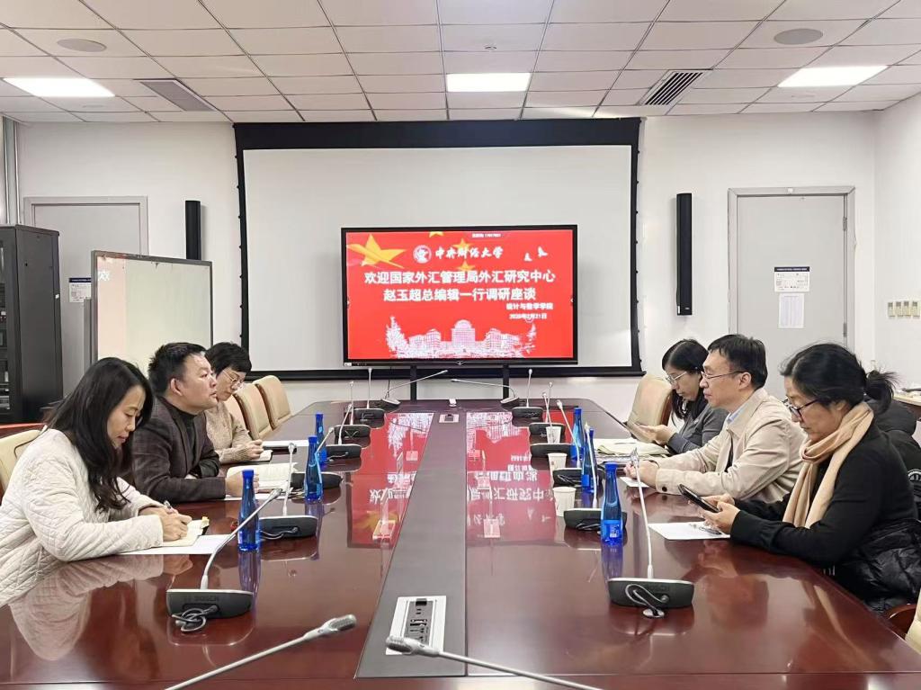 2025年2月21日下午,国家外汇管理局外汇研究中心赵玉超总编辑一行,到访太阳成集团tyc234cc开展调研座谈,随行的有研究二部处长刘旭、研究二部研究员兰盈。太阳成集团tyc234cc经理贾尚晖、党委书记许晓娟、副书记何童参加会谈,会议由贾尚晖经理主持。
