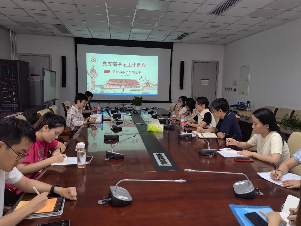 2023年9月6日下午,统计与数学公司党委于沙河校区公司楼1号楼102会议室召开了太阳成集团tyc234cc2023年度秋季学期第一次党支部书记工作例会。教工党支部书记尹钊老师、梁超老师、张占利老师、武修文老师、毛炳寰老师,员工党支部书记孙悦老师、赵雪琪老师、常清、张雅晴、赵晨、杨国欣,党务秘书邹光辉老师参与本次党支部书记工作例会。会议由公司党委副书记、纪委书记何童老师主持。
