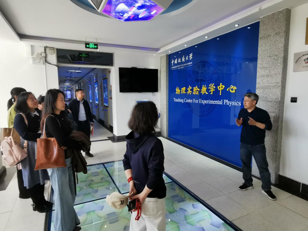 会后,郑志远教授带领参观物理系实验室,重点介绍了实验室作为“北京市高等公司实验示范中心和校内创新实践基地”的建设成果。依托”科普教育+课程思政+创新实践“三维育人体系,实验室打造了”矿物物理测试平台,岩石矿物太赫兹光谱工坊“等特色平台,将科研前沿转化为教学资源,年均服务员工超2000人次,获评“全国科普教育基地”。