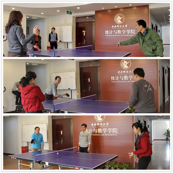 尽管是中午比赛,但并没有降低老师们的热情。不一会儿,大厅里就聚满了人。大家三五成群,边聊边看,为选手们加油,场面十分热烈。选手们更是你争我抢,力勇争先。看!老将们率先出马,王秀国教授和胡永宏教授率先展开了较量。王秀国教授略胜一筹,率先拿下一局。胡永宏教授不甘示弱,很快扳回一局。决胜局中,双方的争夺进入白热化,最后王秀国教授以微弱的优势取得了比赛的胜利。接下来马景义老师与孙昭旭老师的比赛也是势均力敌、难分胜负,球速也明显加快,第一局的竞争就异常激烈,双方比分交替上升。