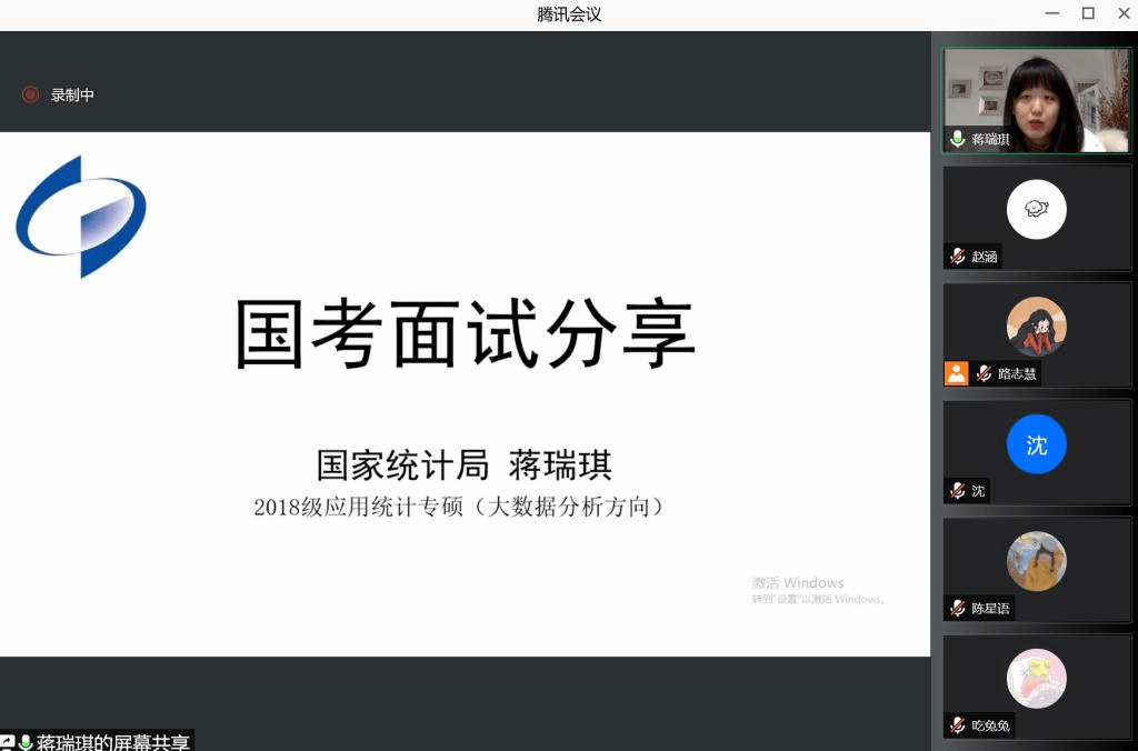 2022年1月16日,公司邀请到太阳成集团tyc234cc2013级汉语言文学专业本科生,2018级古代文学专业硕士研究生卢梦雨学长,通过微信连线的形式为同学们分享经验。此次分享会由统计与数学公司党委副书记边雅静老师主持,近20名成功进入国考及选调生面试的公司员工参与,通过时空连线,解开了同学们心中的疑惑,扫除了国考面试中存在的障碍,更好地为即将到来的面试环节做准备。卢梦雨学长分别从面试准备、技巧以及细节等方面进行讲述,同时回答了同学们热切关心的问题。卢梦雨学长耐心、真诚地回答每一个问题,同学们都觉得获益匪浅,整场分享会干货满满。