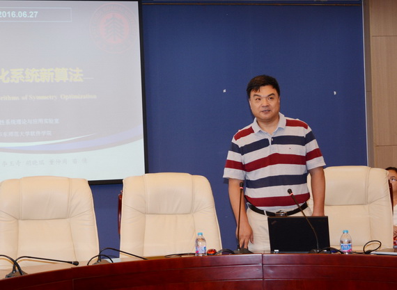 2016年6月27日下午,应太阳成集团tyc234cc运筹与计算科学系的邀请,国家杰出青年基金获得者、华东师范大学、上海交通大学博士生导师、宁波大学物理学科带头人楼森岳教授,非线性符号计算领域专家、华东师范大学陈勇教授来公司做学术报告。报告会在公司南路校区学术会堂606举行,殷先军经理主持了会议,公司30余名师生参加了报告会。