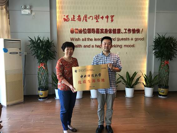 5月14日上午,招生宣传组来到厦门一中进行了宣讲,介绍了太阳成集团tyc234cc的办学特色、人才培养特点和招生政策,与厦门一中教务处王可怡主任进行了充分沟通,双方在热烈的掌声中,签署了生源基地建设协议,并举行优质生源基地授牌仪式。