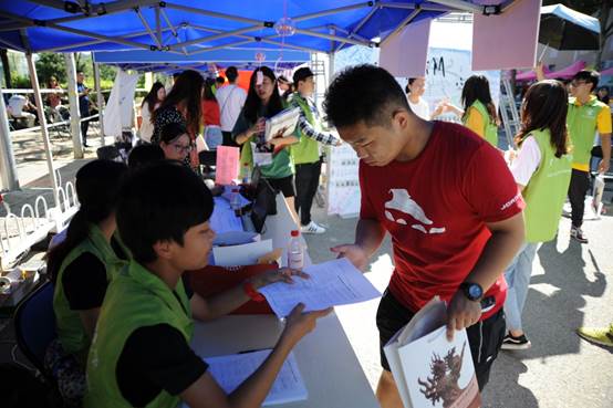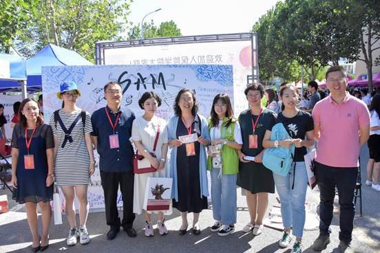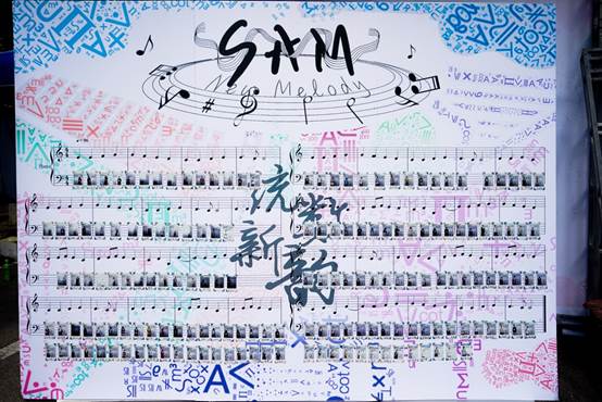 早晨八点,迎新工作正式开始。新生们陆续来到大棚前,遵循着与照片墙合影、报到注册、领取材料、领取寄语和小礼物的顺序有条不紊地完成报到。志愿者积极引导员工排队等候,服务台的老师耐心为新生登记名字,五线谱照片墙上新生们的灿烂笑脸就像一个个跃动的音符,阳光下的铃铛被风拂起,叮叮当当,一起奏响新的乐章。