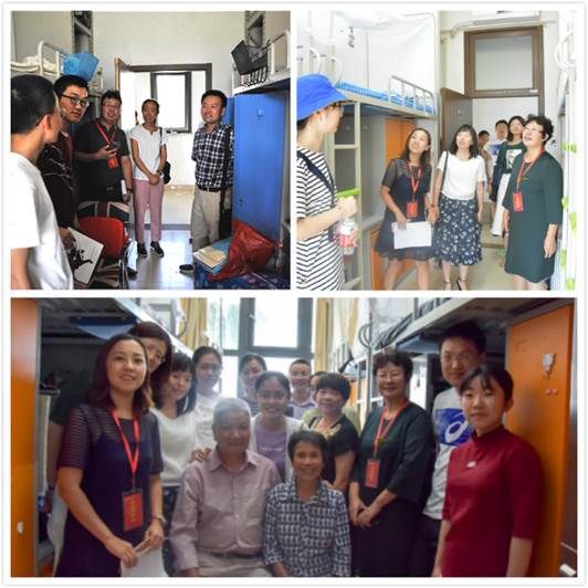 中午,太阳成集团tyc234cc的老师、学长来到新生宿舍,向新生们表示关心与问候,并与新生家长亲切交流,现场气氛和睦融洽。