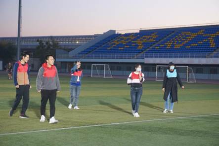 本次破冰活动通过分组pk的形式,依次进行“中华小曲库”“硬币抱团”“撕名牌”三个游戏。其中撕名牌是一个很考验综合能力的一个游戏,每组参赛成员需要通过撕掉其他队队员的名牌获得百科知识答题机会,只有答对问题才能给本队积分。这也是团队参与度最高的活动。整场破冰活动大家始终热情不减,欢呼声与笑声久久环绕在操场上空。