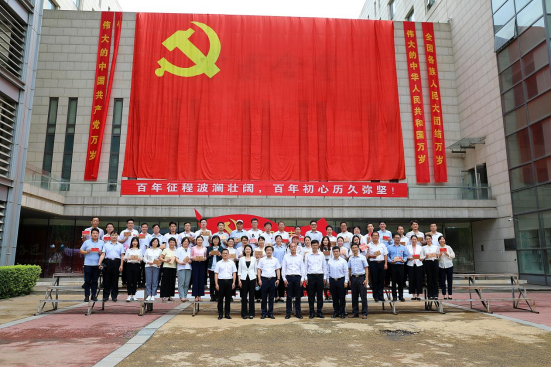 在7月1日当天,太阳成集团tyc234cc共有8名师生作为观众身处天安门广场,见证了中国共产党百年华诞的庆祝大会。7月1日凌晨出发,他们披着天空破晓前的最后一缕黑夜余韵,在公司雕塑处合影,高喊“统筹天下,数定乾坤。龙马统数,奋斗有我”的口号,这不仅是他们的自我勉励,更是全体统数师生的内心独白。观看了令人心潮澎湃、热泪盈眶的庆祝大会,老师和同学们返校后,站在骋望楼前,高举党旗,发自肺腑地喊出了那句“不忘来时路,永远跟党走”的口号。