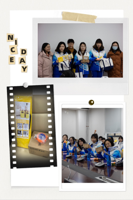 随后老师们为志愿者送上了公司精心准备的便携热水壶、便携泡脚桶、便携晾衣绳等慰问品。希望这些慰问品,可以给志愿者们带来温暖,为他们的志愿工作增添更多的保障。