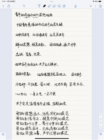 今日学习习近平总书记关于共青团成立百年的重要讲话,感触颇深。2022年是中国共青团成立一百周年,正如习近平总书记在讲话开头所说,“青年的命运从来都和时代紧密相连”。回望历史,一百年前,我们的先辈们怀揣着爱国热情投入轰轰烈烈的革命事业,而百年后的我们作为社会主义接班人,也应当接过时代的接力棒,担当起时代重任,彰显青春活力,展现青年独有的精神风貌。