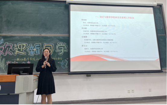 公司党委书记李全敏老师向同学们介绍了公司的基本情况,并重点强调了公司健全的人才培养体系和在就业方面的优势,帮助大家更快融入统数公司这个大家庭。同时鼓励大家注意健康,积极锻炼身体,并处理好师生、室友和同学关系,并祝愿大家能够在中财大度过愉快的研究生生活。