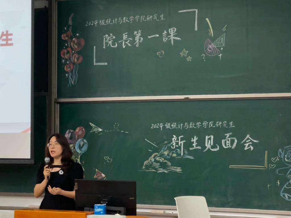 见面会伊始,党委书记许晓娟对新生们的到来表示了热烈的欢迎。发言中,她从学与业、知与行、小我与大我三个角度引导员工注重学科思维的养成,积极参与跨学科学术实践,通过学与业融通、知行合一,将小我融于大我,赋能财经报国理想。