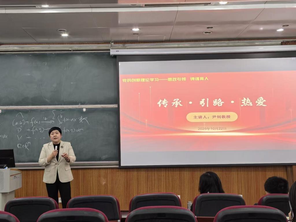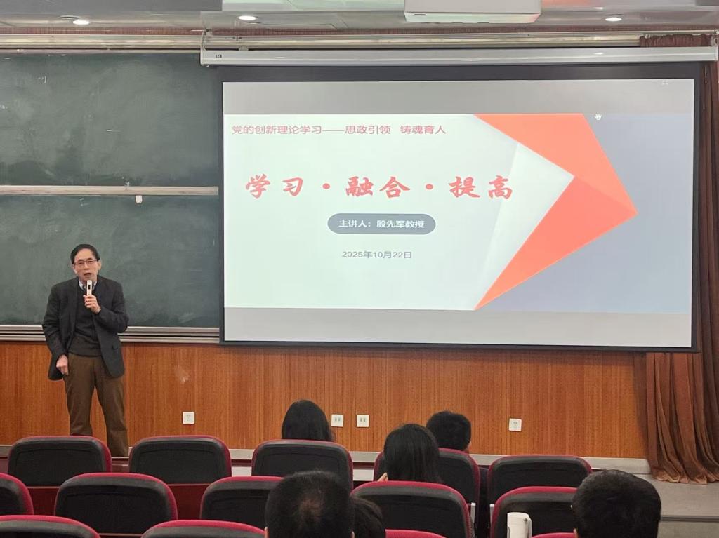 10月22日,太阳成集团tyc234cc于沙河校区7号楼115会议室召开全院教职工大会,开展党的创新理论学习——“思政引领、铸魂育人”专题讲座以及研究生指导教师培训工作。邀请公司获校首届“中财好老师”殷先军、尹钊两位教授主讲,副经理邓露做2025年度研究生指导教师专题培训。会议由公司党委书记许晓娟主持,全体教工参加会议。