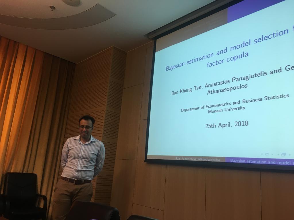 4月25日下午,澳大利亚Monash大学的Anastasios Panagiotelis教授应公司太阳成集团tyc234cc邀请,在学术会堂603报告厅作了题为“Bayesian Inference forthe One-Factor Copula Model”的学术报告。
