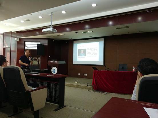 在报告中,白中治研究员首先介绍了Gene Golub的个人传记和学术成就。然后,主要讲了HSS迭代法以及与HSS迭代法相关的研究结果,包括参数的选取和算法收敛速度的分析。该方法主要用于求解大型稀疏非Hermitian正定的线性方程组,并且具有无条件收敛的性质。最后,还指出了HSS迭代法的后续研究方向,期望能给在座老师们一些启发。报告结束时,白中治研究员与部分老师们进行了热烈的互动交流,并对对计算数学学科的发展提出了很好的建议,殷经理对报告作了精彩的归纳总结。