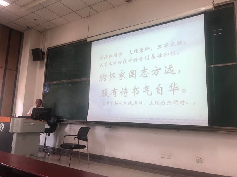 在报告中,余德浩研究员介绍了科学计算的发展历史。他指出科学计算的兴起是二十世纪后半页最重要的科技进步之一。今天几乎所有学科领域的发展都离不开科学计算。已故冯康院士是我国科学计算事业的奠基人和开拓者。作为冯康院士亲自指导的第一个博士及国家自然科学二等奖获得者,余德浩研究员以其从事研究工作数十年的亲身经历和对恩师冯康先生的深厚感情,以及在数学与文学诸方面的学识修养,通过讲述故事、吟诵诗词的方式,声情并茂地论述了科学计算的重要性,回顾了中国计算事业的发展历程,追忆了冯康院士的学术生涯和杰出贡献。同时,余德浩研究员谈到了自己选择数学研究为职业的原因。余德浩研究员喜爱数学,又深受中华文化滋养熏陶,喜爱诗词。数学和诗词贯穿在他的人生,也贯穿在报告中。报告结束后,余德浩研究员与在座的师生们进行了热烈的互动。