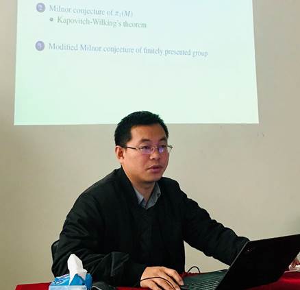 几何群理论是通过有限生成群的相关Cayley图的几何来研究有限生成群。在此次报告中,葛教授首先介绍了几何群论、几何拓扑领域的一些经典问题与经典理论,同时介绍了该方向的近期国际上的热点研究问题和研究成果。随后解释了一些与几何群与Ricci曲率相关的基本思想,尤其是Gromov-Hausdorff度量的相关理论,还向与会者介绍了有关修正的Milnor猜想问题的一些最新进展。