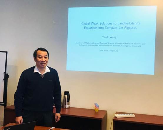 2019年12月14日,应公司应用数学系邀请,中科院数学与系统科学研究院王友德研究员来公司作了题为“李代数值的Landau-Lifshitz方程的弱解”的报告。