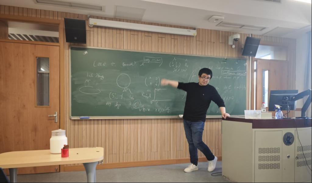 杨佳刚老师就保体积一致扩张映射上的可积SL(2)-线性上链的Lyapunov指数在L^1-拓扑下的连续变化问题,介绍了此问题的研究历史与最新结果。报告内容具有很高的学术价值,激发了听众们的兴趣与讨论。