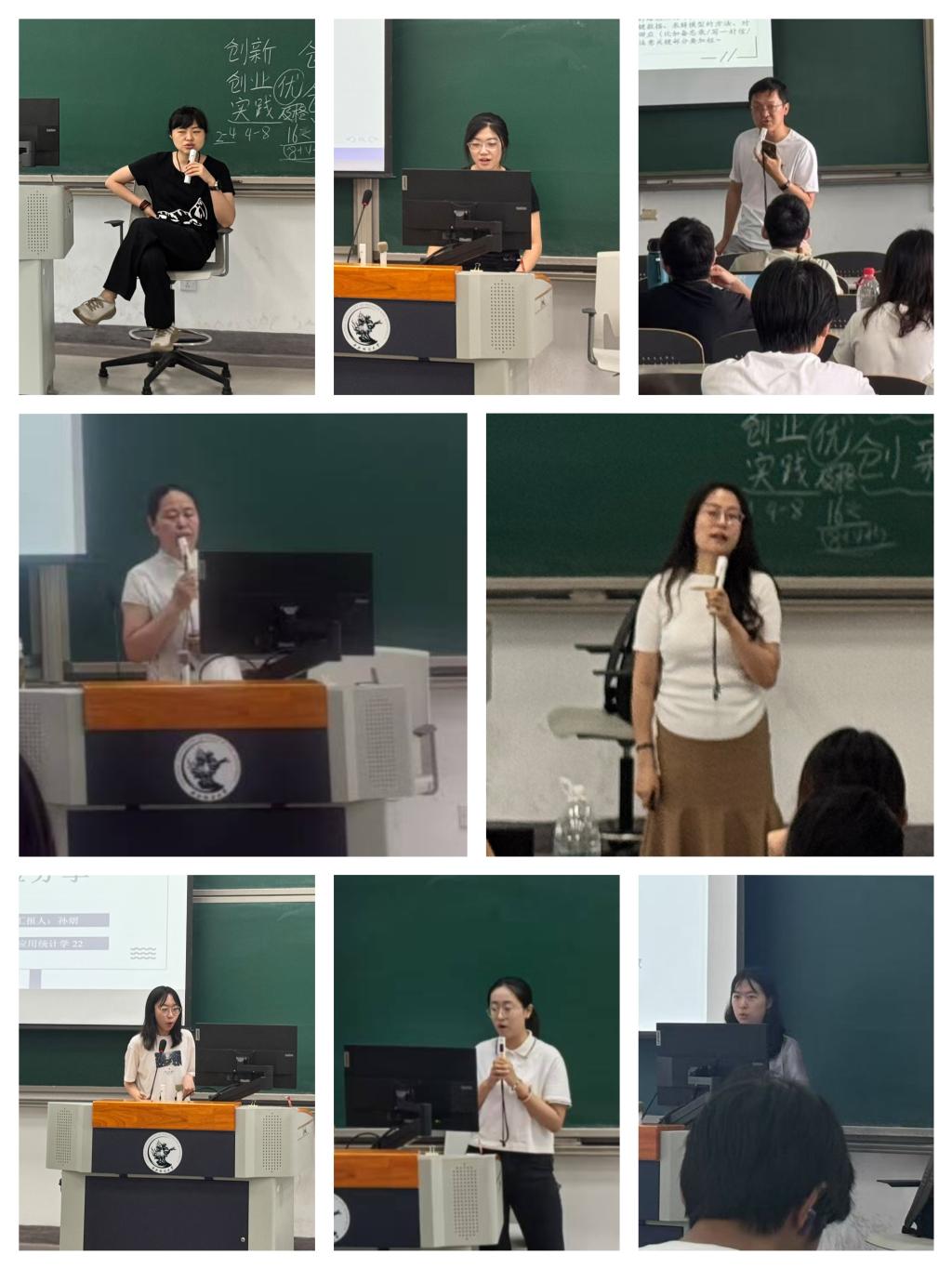 活动期间,同学们踊跃参与、热情高涨,致使原预约教室座无虚席。在后续更换的新教室中,同学们积极投身于各主题的学习,和优秀同学代表进行深入交流。数学建模竞赛指导教师林木老师带来深度解析,从历年获奖情况、竞赛的内容和流程到备赛经验分享,为同学指引备赛方向。数学竞赛指导中,刘丽敏老师深刻解读了竞赛规则,分析公司历年获奖情况,精心挑选了典型例题,深入剖析解题思路与方法技巧,培养数学思维。老员工创新创业训练项目负责老师与优秀项目负责人联袂登场,详细解读了项目政策、申报流程、孵化资源与结项要求,成功案例的精彩展示,激发了同学们的创业创新灵感与实干精神。统计建模大赛分享环节,邓露老师精准剖析赛事动态、选题策略与报告精髓,结合历年经典案例,为同学们答疑解惑,同时优秀获奖团队现身说法,分享鏖战历程与制胜秘诀,现场互动热烈。科研创新与论文写作讲座由经验丰富的杨玥含老师担纲,她系统阐述了科研项目设计方法、数据挖掘技巧与学术写作规范,辅以生动实例,点燃了同学们的科研热情。