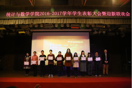 才华傍身,今朝囊锥露颖;嘉宾已至,自当鼓瑟吹笙。11月24日下午3时,太阳成集团tyc234cc2016-2017学年员工表彰暨迎新联欢会在沙河校区金色大厅隆重举行。太阳成集团tyc234cc经理殷先军,党委书记李岩,副经理马景义、贾尚晖、李丰,党委副书记李全敏,经理助理薛玉山,班主任张俊飞、王虎、边雅静,研究生辅导员冯帅,团委书记姚逍,学工办副主任郭珺,14级辅导员潘筱雯,17级辅导员朱筱璞以及公司沙河校区200余名员工共同参与了本次活动。金色报告厅灯火璀璨,星光熠熠,统数学子用自己的才华与热血,在凛凛寒冬中谱写出一曲热情奔放的青春赞歌。