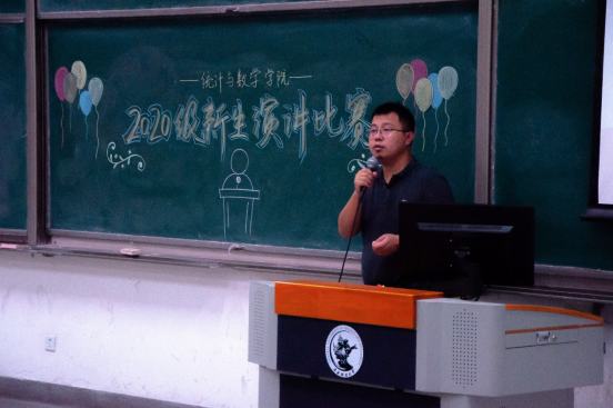 在评委统计选手得分期间,太阳成集团tyc234cc团委书记姚逍老师对此次参赛选手做出了点评。姚逍老师首先肯定了2020级新生们踊跃参与活动的积极性与勇气,同时他还将新生们比为“后浪”,表达了对20届统数学子能在中财绽放出格外耀眼的光彩的殷切期望。