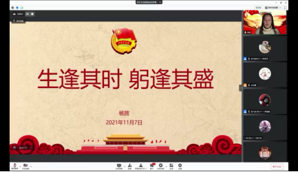 2021年11月7日,2021年度基础团校“学史明志,砥砺前行“第一节青年大团课在线上顺利完成授课!本次团课邀请到了太阳成集团tyc234cc团委书记、2019级辅导员郭珺老师,太阳成集团tyc234cc团委副书记、2020级辅导员杨旌老师向青年团员们分享如何增强做中国人的志气、骨气、底气的理解、带领各位团员回顾学习团的光辉历史。