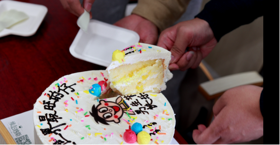 为了让男生节过得更别具意义,让男生们真正体会到这是属于他们的节日,支部的女生们为男生们定制了一款蛋糕,蛋糕上的画像是非常熟知的一个卡通形象——旺旺,并且还写着“男生节快乐”的字样。寓意着希望男生们能够像生活在另一个世界的旺旺一样,开心快乐,不被生活中的烦恼所困扰。在经过男生们集体吹蜡烛的环节之后,大家一起握着刀柄,切开了蛋糕。