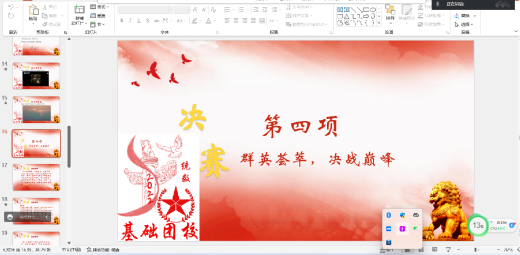 经过一番激烈角逐,最终第2,4,8,9,13组胜出,进入决赛。在决赛进行过程中,为了让未进入决赛的选手也能有满意的比赛体验,主持人精心准备了乐趣与深度并存的红色主题视频,供大家观看。《觉醒年代》的铿锵字句,深深刻进学员心中,那段辉煌的历史生动重现,中国青年的风采与魅力辉耀其间。