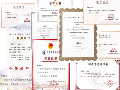 初入大学,李宜琛同学便为自己定下了“做不被定义的多面体”的要求。作为统计学专业的一名员工,大一时她在面对各种高等数学课程并不得心应手,也产生了对专业选择的怀疑与对未来的迷茫。但她没有放弃,而是通过用更多的课余时间进行知识的钻研,来提升熟练度。与此同时,她也一直坚持积极参与各种比赛与科研活动,不断发掘其他领域的特长。第一次尝试美赛虽然未获得好成绩,但是她相信未来的自己将能够通过这些比赛的尝试,增强自己的科研能力,找到自己专业的乐趣。功夫不负有心人,而后在正大杯市场调研大赛,李宜琛同学获得了北京市一等奖的好成绩。在寒假中,她也参与了哥伦比亚大学商业创新发展项目,最终获得了第一名的成绩。在暑假中,她申请为哥大项目的助教,开展mini lecture讲述《How to Be a Good Story Teller?》。她还选择了金融学作为辅修专业以加深对交叉领域的掌握,同时也能够应对大数据时代的背景。