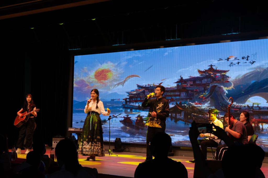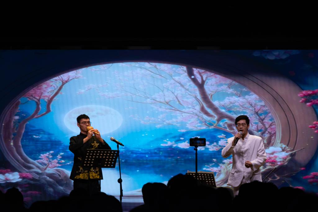 在优美的古典舞之后,徐融、吴宗蔚带来了民乐串烧《一剪梅+涛声依旧》。作为中华传统艺术形式,民乐串烧是中华传统文化带给耳朵的一大盛宴,温柔地描绘着诗意和远方。