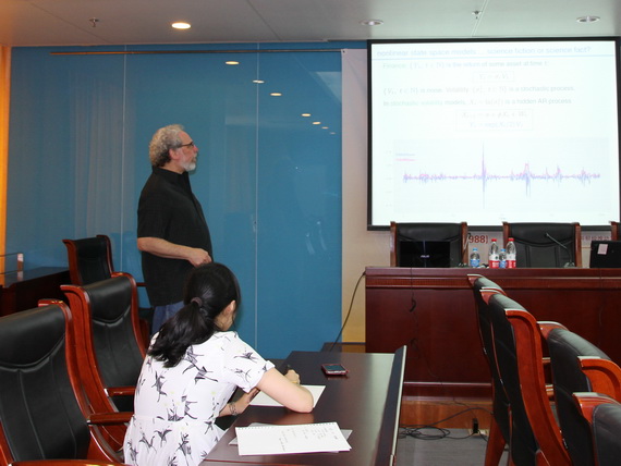 2015年6月18,美国匹兹堡大学David S. Stoffer教授在学术会堂702为公司师生做了题为”Almost everything you always wanted to know about nonlinear state space models (but were afraid to ask)”的学术报告,介绍了状态空间模型的最新发展与应用。公司部分教师和研究生参加了报告会,并与Stoffer教授就感兴趣的问题进行了讨论。