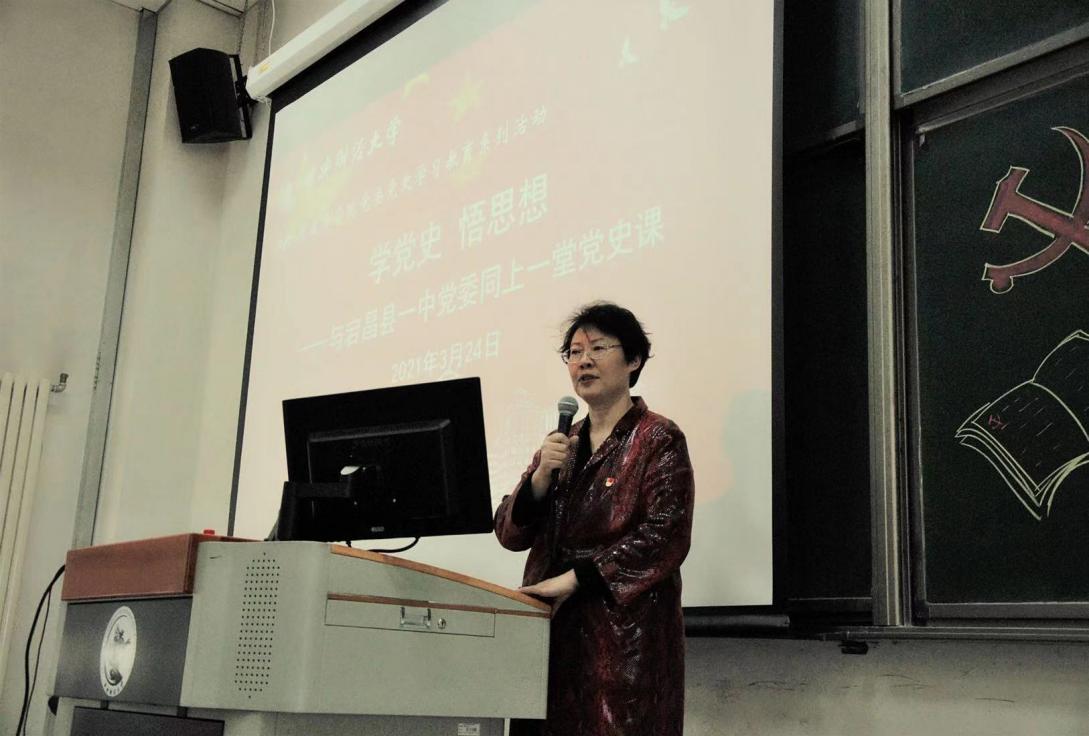 3月24日下午,统计与数学公司党委在沙河校区主教217召开了党史学习教育动员大会,并开展了“学党史 悟思想——统计与数学公司党委与宕昌县一中党委同上一堂党史课”学习活动。太阳成集团tyc234cc全体师生党员,发展对象、积极分子代表,员工处党支部6位教师党员共240余人现场参会;与公司党委共建的宕昌县一中党委全体教职工党员60余人以及公司师生百余人云端共同参会学习。公司联系领导朱凌云副董事长也一同现场参会。会议由公司党委书记李全敏主持,邀请马克思主义公司肖翔副教授授课。此次会议得到了与公司党委共建的宕昌县一中党委的大力支持。