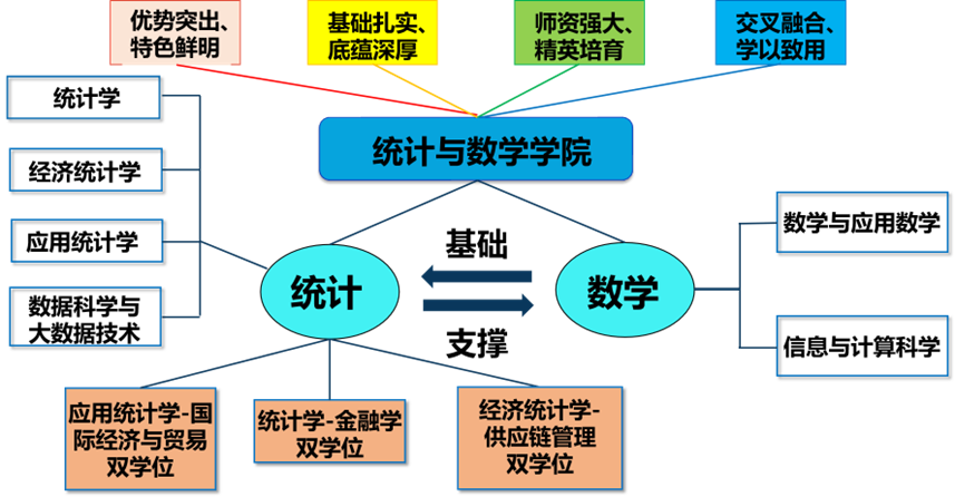 公司拥有统计学、数学两个一级学科,应用经济学下的数量经济学二级学科,在经济统计、数理统计、金融统计与风险管理、应用统计、概率论、应用数学、运筹与计算科学、数量经济等学科方向上基础雄厚,努力成为培养统计学家、应用数学家和数据科学家的摇篮。2007年统计学获批首批国家级特色专业,2011年获首批统计学一级学科博士点授予权, 2018年获批数学一级学科硕士点,2019年“统计学”获批首批国家级一流本科专业建设点和北京市重点建设一流专业,2021年“数学与应用数学”获批北京市一流本科专业建设点, “统计学-金融学”获批北京市双学士学位复合型人才培养项目,2022年“经济统计学”“应用统计学”获批国家级一流本科专业建设点,“数据科学与大数据技术”“信息与计算科学”获批北京市一流本科专业建设点,2024年“应用统计学-国际经济与贸易”、“经济统计学-供应链管理”获批北京市双学士学位复合型人才培养项目。